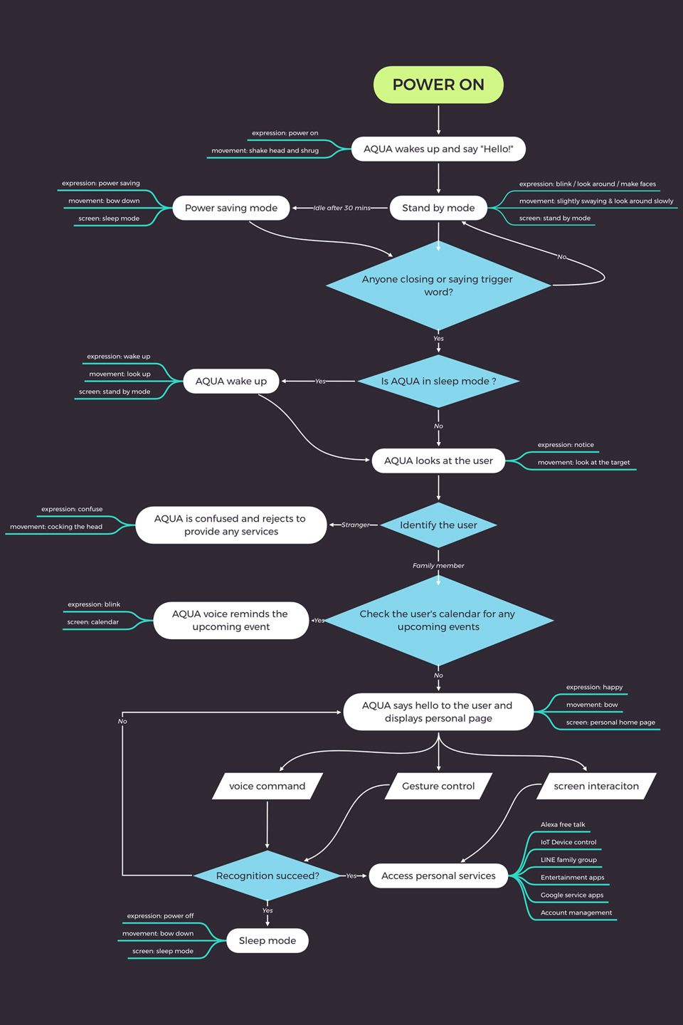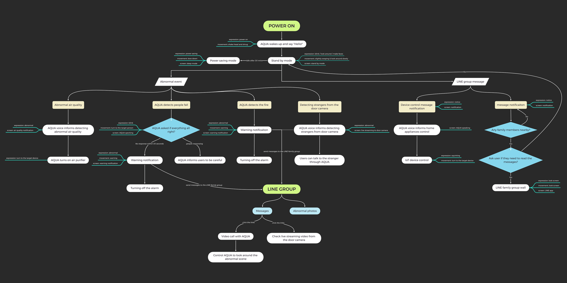 After shaping the concept, we mapped AQUA’s behavior through close collaboration with designers, engineers, and developers.