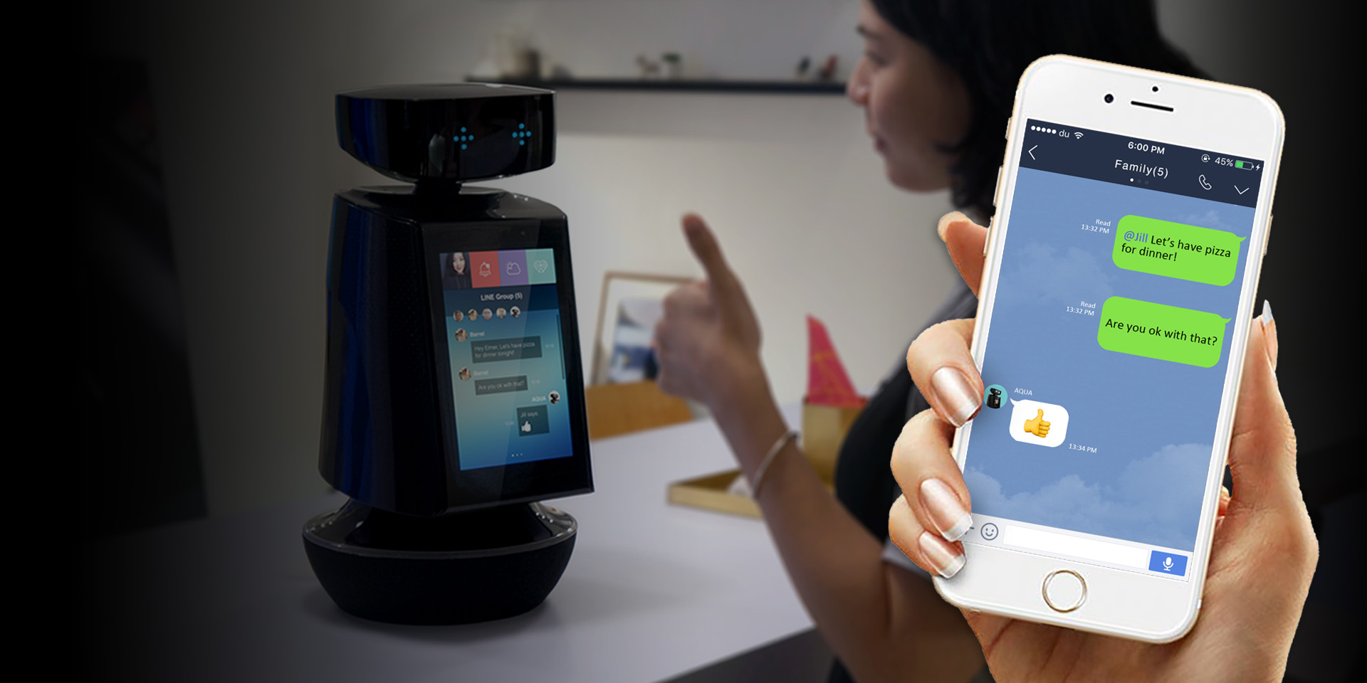 At Computex 2018, AQUA debuted as a live prototype featuring AI vision, gesture interaction, six-axis expressiveness, and home-safety functions.