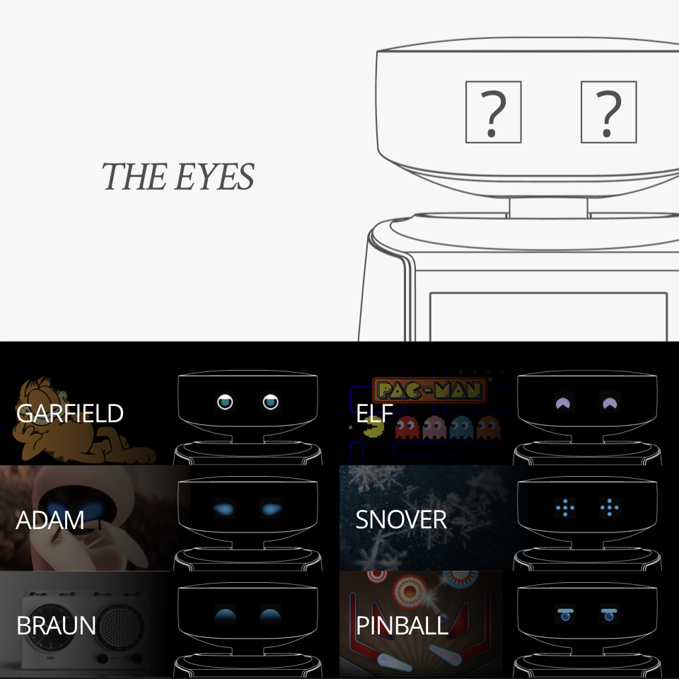 We designed AQUA’s expressive system to bring emotional presence into the home—combining eyes and body language to communicate attention, mood, and care without words.